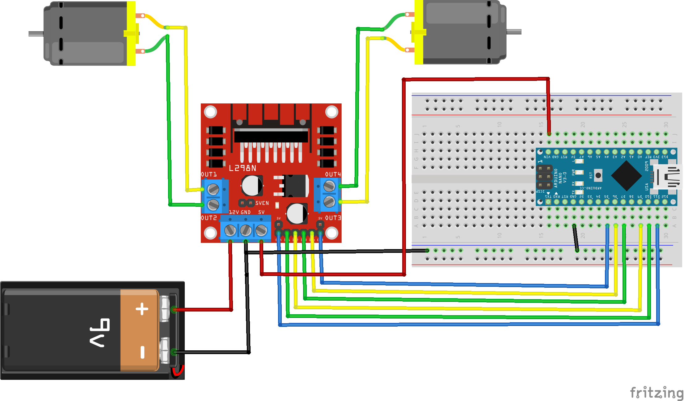 Αρχικά θα συνδέσουμε τους κινητήρες μας με τον οδηγό και το arduino ακολουθώντας τον παρακάτω πίνακα και το σχέδιο
