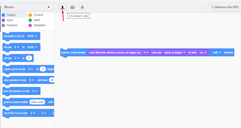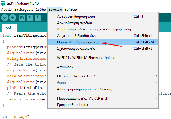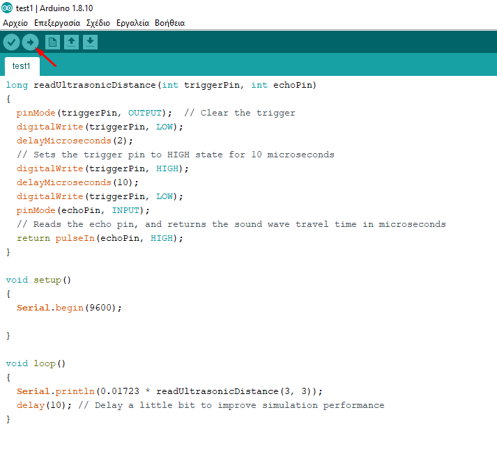 Θα δημιουργήσουμε ένα πρόγραμμα το οποίο θα εμφανίζει στον υπολογιστή την απόσταση των εμποδίων που βλέπει μπροστά του ο αισθητήρα απόστασης.