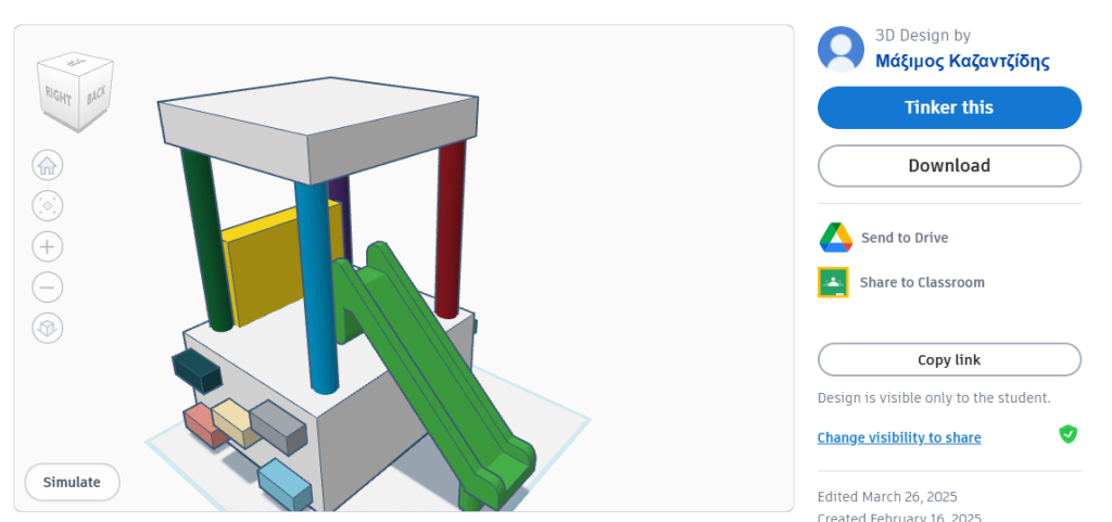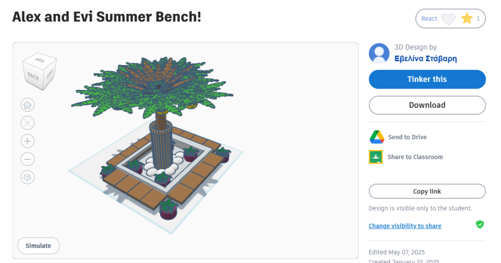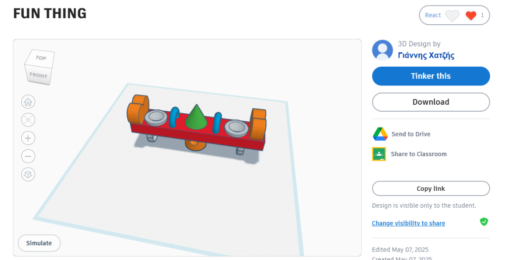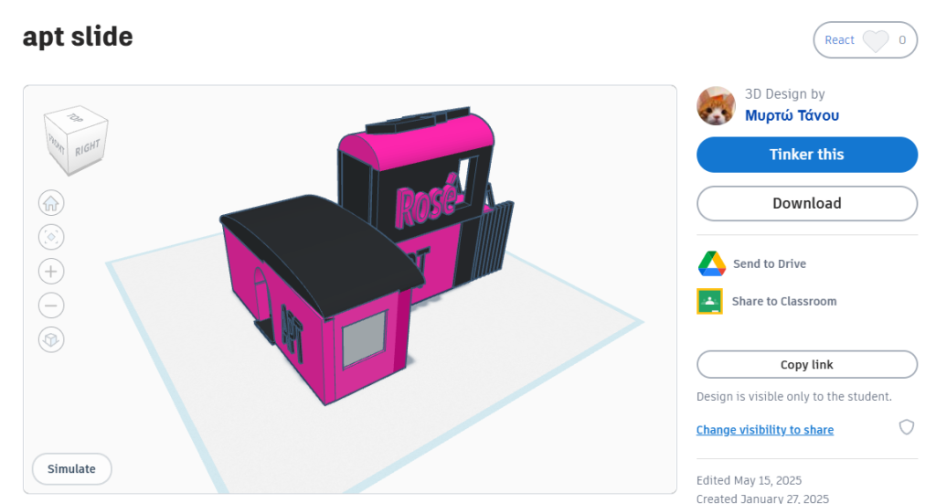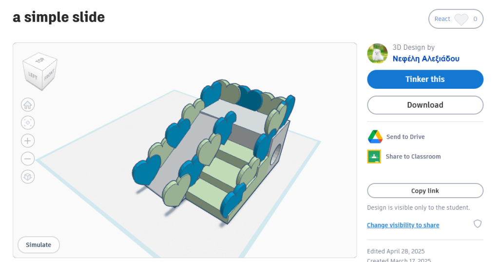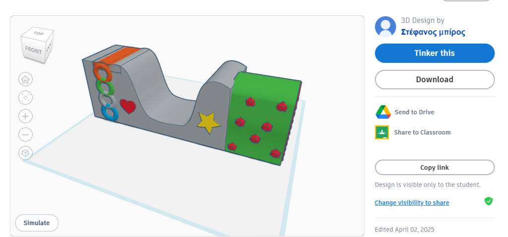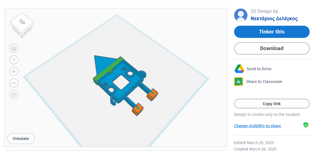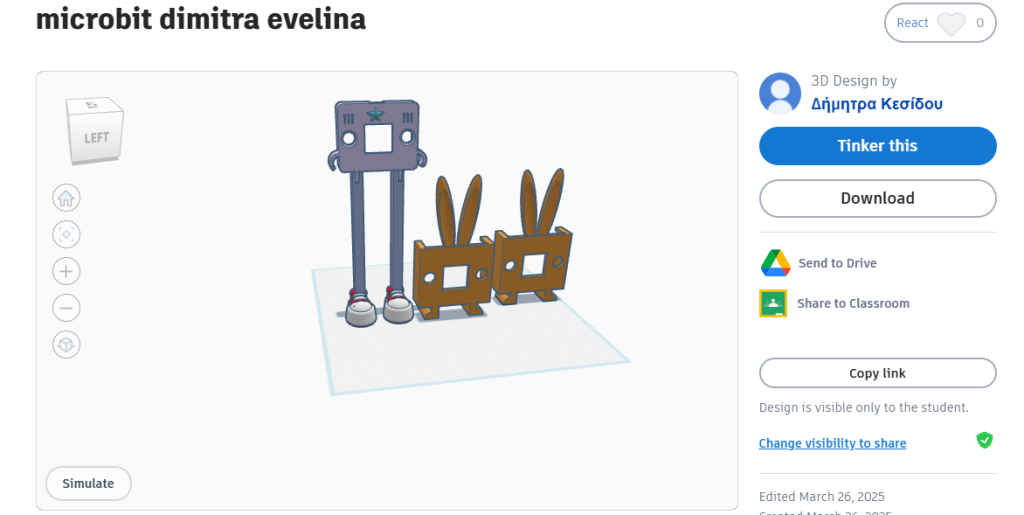 Ακολούθησε ο ψηφιακός σχεδιασμός στο TinkerCAD από τους μαθητές της Δ της Ε και της ΣΤ τάξης: